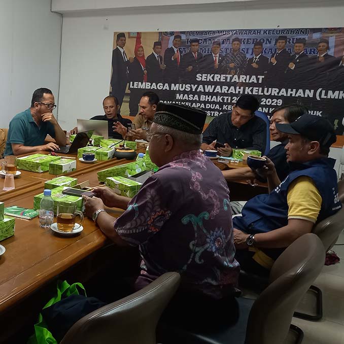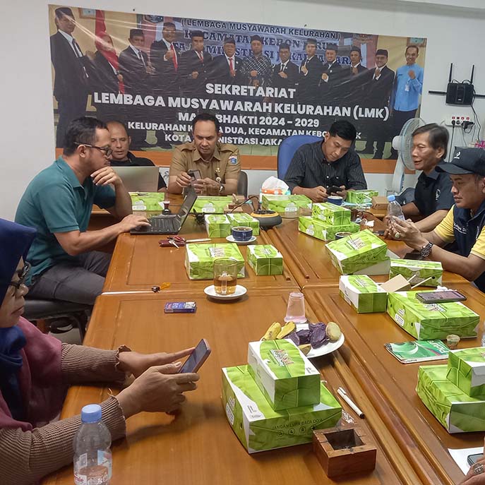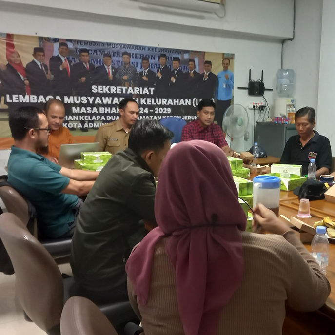 Kegiatan rapat bulanan LMK Kelurahan Kelapa Dua, di Sekretariat LMK Kantor Kelurahan Kelapa Dua Lantai 4.